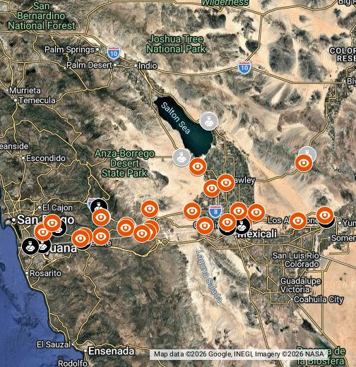 map purporting to show locations of federal license plate readers hidden in barrels and trailers in Southern California #ice #cbp #privacy #surveillance . #licenseplatereaders