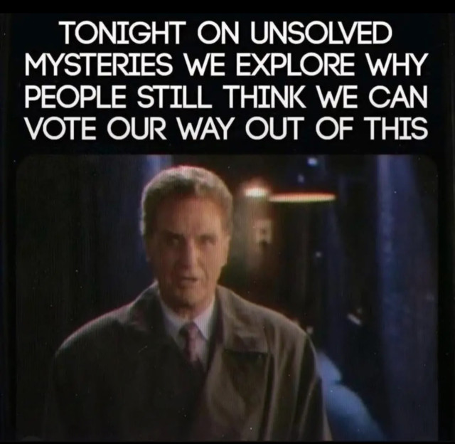 Instead of only engaging in politics every few years when its time to vote, people should be politically active all year and engaged in struggle in the workplace and on the streets. Minneapolis shows the way - they didn't vote to get rid of Kristi Noem, they forced her out by taking to the streets and by launching a general strike. Voting might be part of a larger strategy, but only part of one.