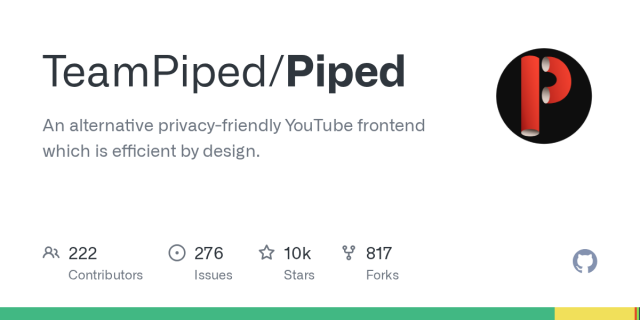 GitHub - TeamPiped/Piped: An alternative privacy-friendly YouTube frontend which is efficient by design.