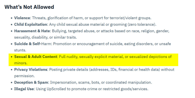 Also, for an "anti-censorship" platform it's funny that they ban any kind of "adult" content.