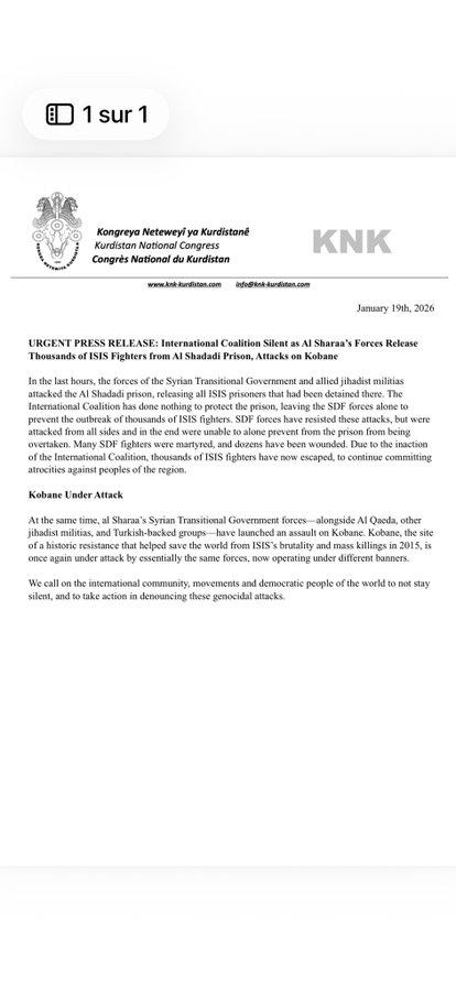 Some of the stuff I read coming out of there yesterday is horrific. Jolani opened the prisons full of ISIS and they rampaged through Kobanê.