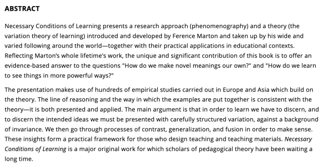 Attached: 1 image Necessary Conditions of Learning By Ference Marton https://www.taylorfrancis.com/books/mono/10.4324/9781315816876/necessary-conditions-learning-ference-marton h/t @mapto@qoto.org for sharing itMastodon