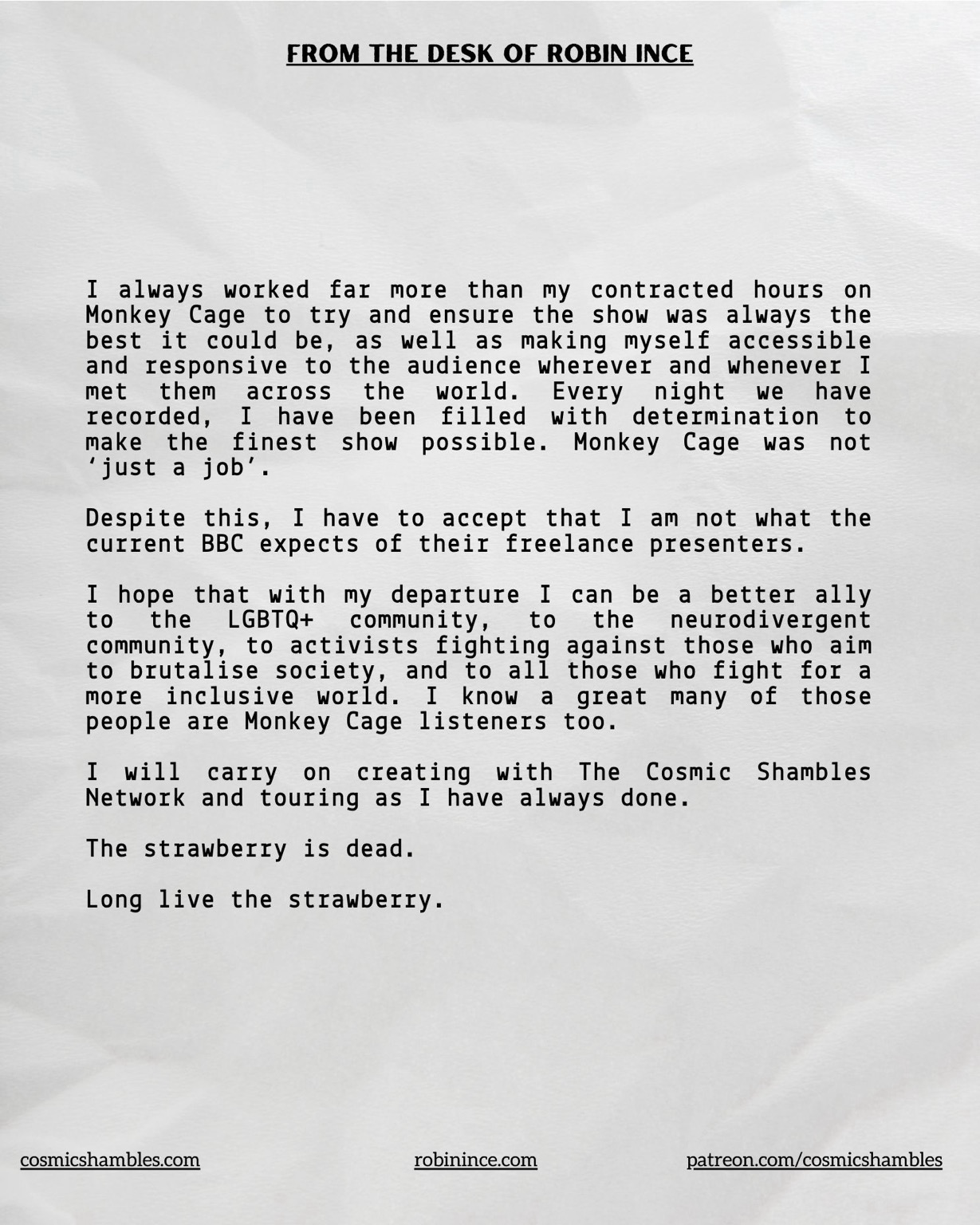 in reply to Robin Ince • • •I am both sad that it has come to this, but also incredibly proud of the principled stance you’re taking.