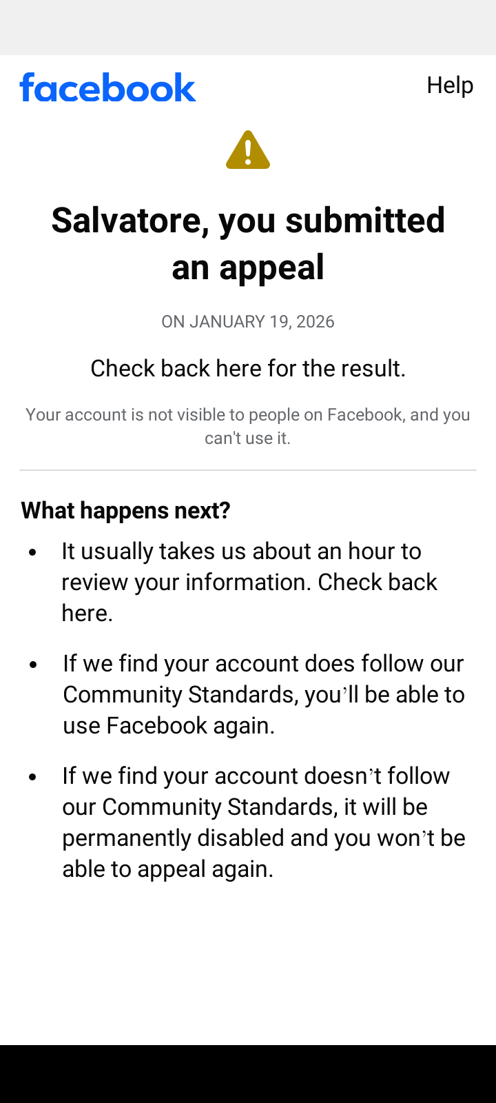 This account was eventually migrated to the meta account system and still works while my facebook account still doesn't work.