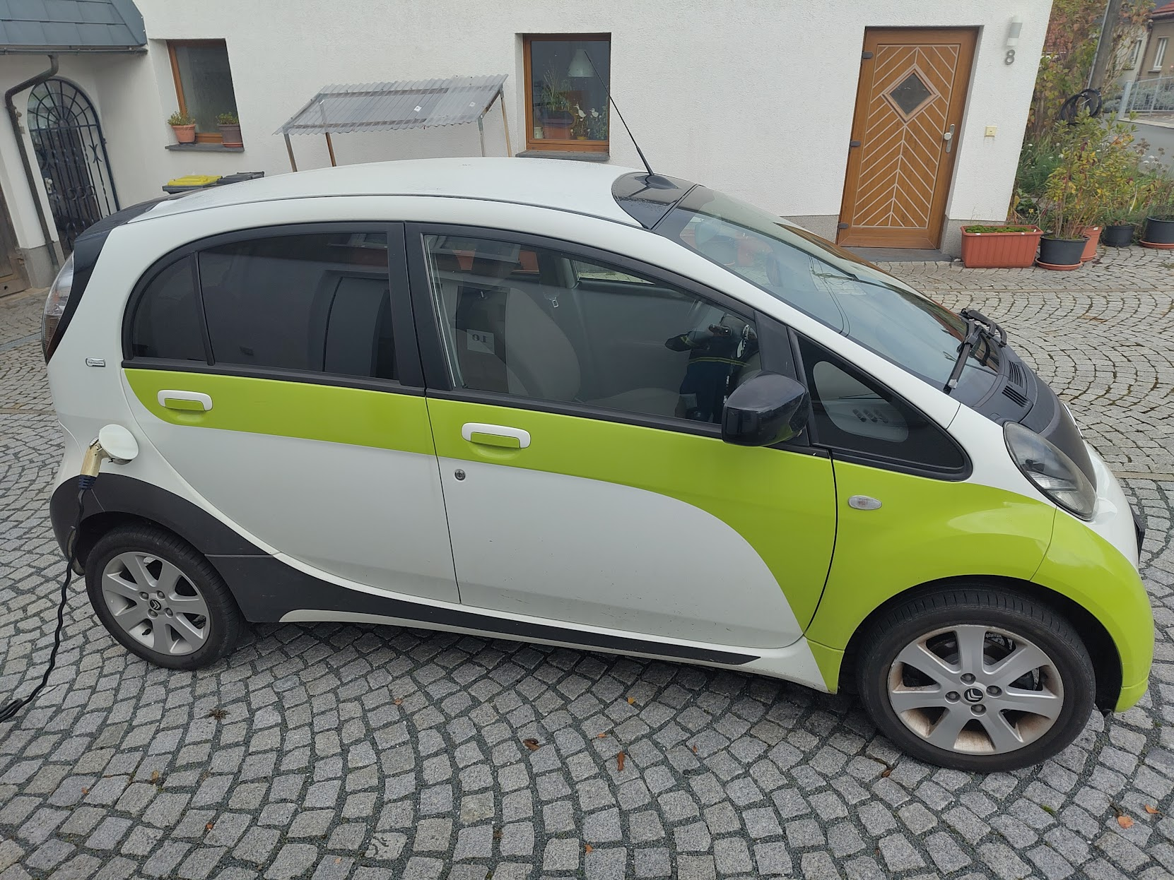 Also sollte ein Kleinwagen her und das möglichst elektrisch. Diverse Modelle bei Händlern angeschaut, 30k€ als idiotisch abgehakt und dann auf dem Gebrauchtmarkt geschaut und da kam uns die Idee ein Experiment zu machen. Wir haben dann gezielt ein älteres E-Auto gesucht und sind bei einem 11 Jahre alten Citroen C-Zero fündig geworden, ca. 70000km Laufleistung. Kosten waren 4500€. Das ist ein E-Auto der 1. Generation, Kleinwagen und ohne Schnörkel. Plan war zu sehen wie lange er hält, was der Akku taugt usw.