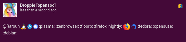 on Masto & Sharkey instances, if the Admins are willing, it is technically possible to add FOSS emojis to the servers. consequently, on many of my instances i've been able to include these in various posts when applicable: