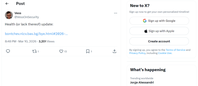 Swap x.com for xcancel.com (including the rest of the URL) and it’ll load the tweet and replies without being logged in.
