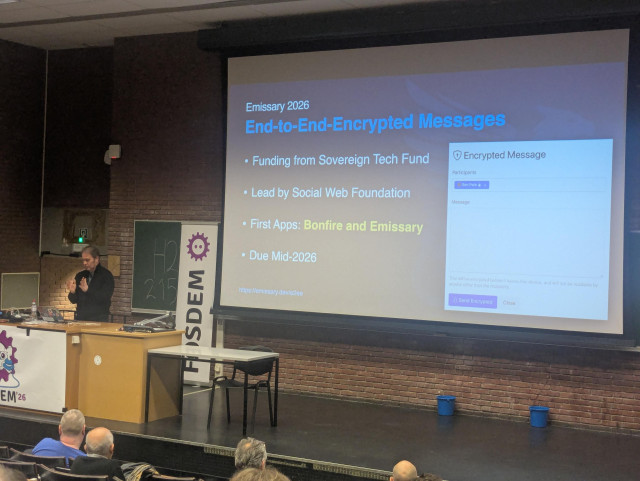 Emissary along with @Bonfire and @swf are working on #MLS based e2ee messaging over #ActivityPub supported by Sovereign Tech Fund