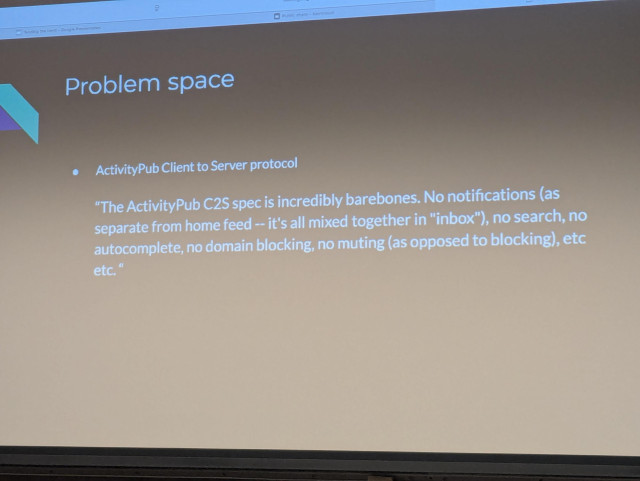 Next we have @django presenting some ideas about moving the ActivityPub API C2S forward