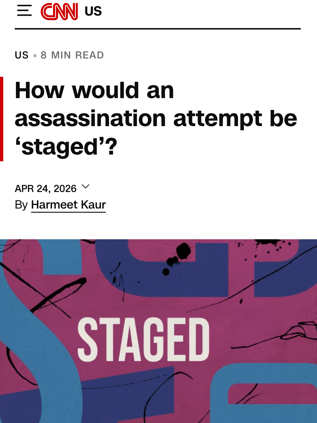 IMHO, people are going to believe whatever they want to about today's event, but one important difference this time is nobody will give Trump any sympathy or a measurable boost in the polls. Nor will it stop people asking questions about Trump's involvement in the Epstein Files.