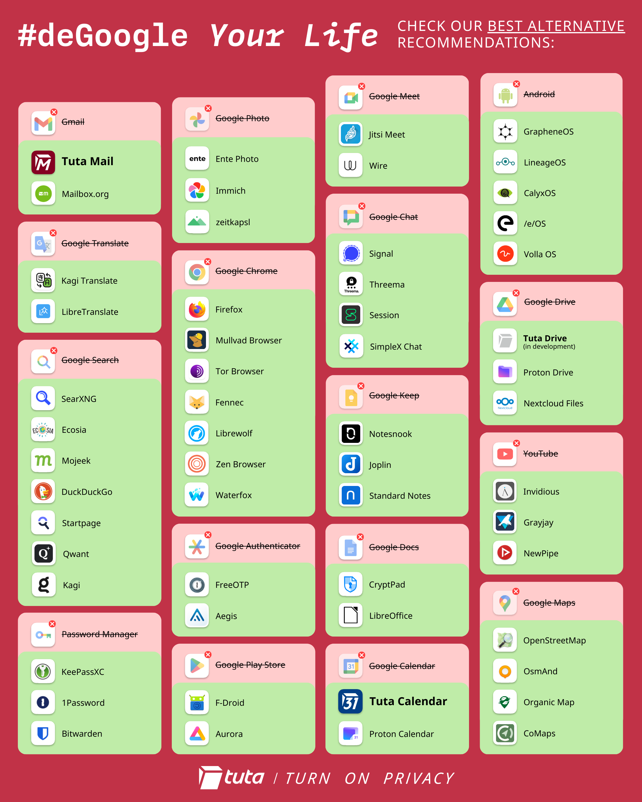 Top list to deGoogle with best private alternatives | 2025 | Tuta