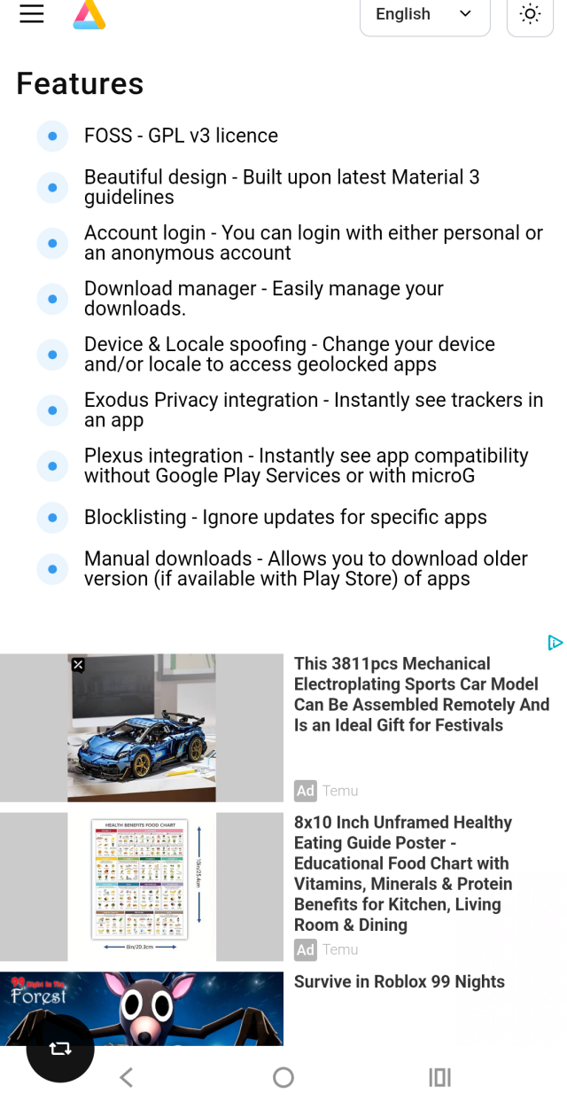 in reply to Ken M Sweeney • • •I just tried Aurora Store. The homepage is full of Temu ads (ironically), there’s no clear download path, no proper instructions, and no obvious way to browse apps 📖.