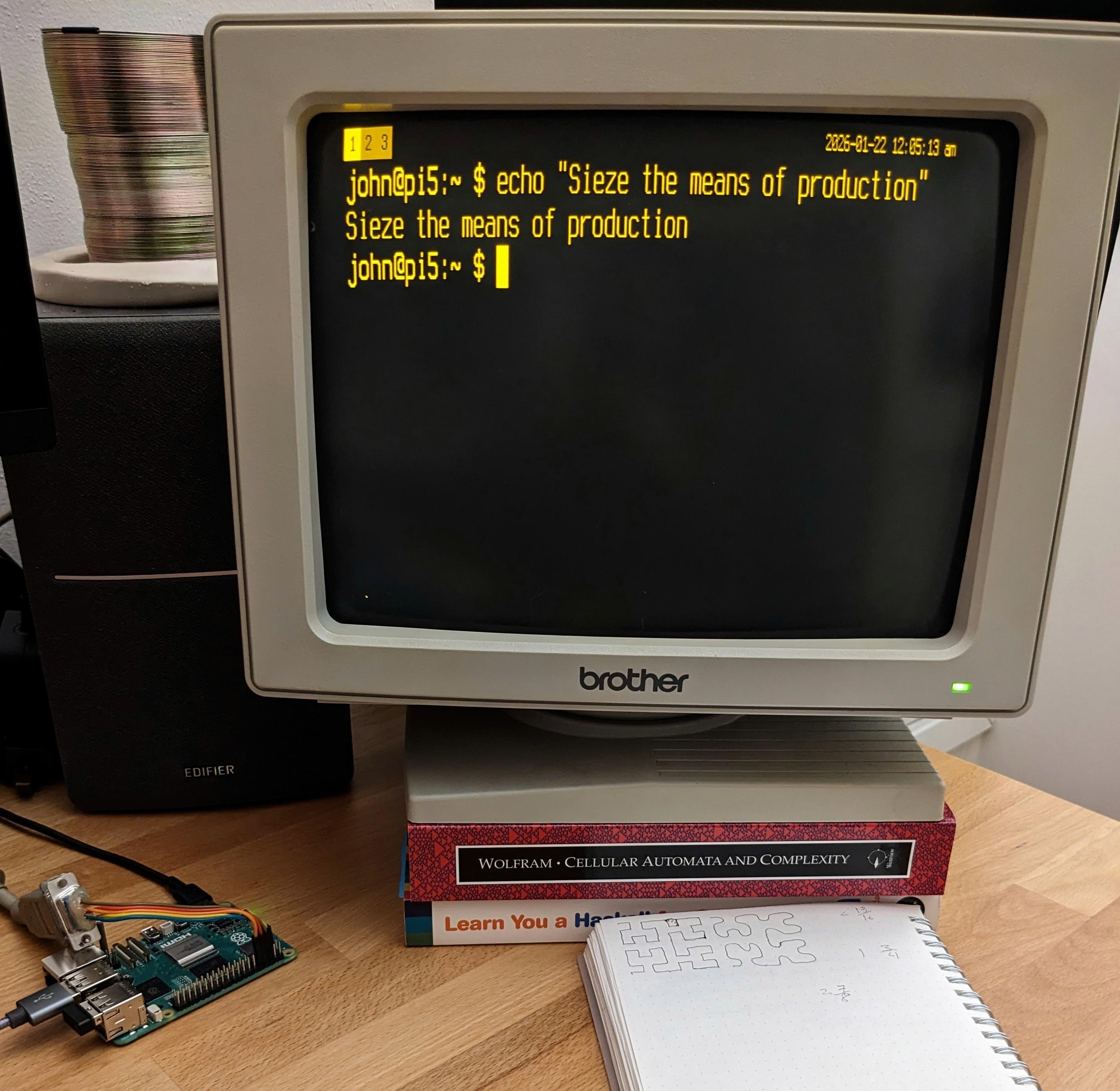 Got this neat little amber monitor from a neighbor. After some trial and error, I eventually got my raspberry pi to generate the correct display signal!