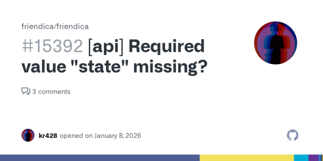 !Friendica Support Seeing github.com/friendica/friendicaโฆ with @Pachli (thanks @Kristian ๐ thanks for reporting) and wondering, if state is not implemented according to what mastodon api is expecting, this would mean friendica will have trouble with any mastodon client, right?![[api] Required value](https://friendica.hellquist.eu/photo/preview/640/5395380)
