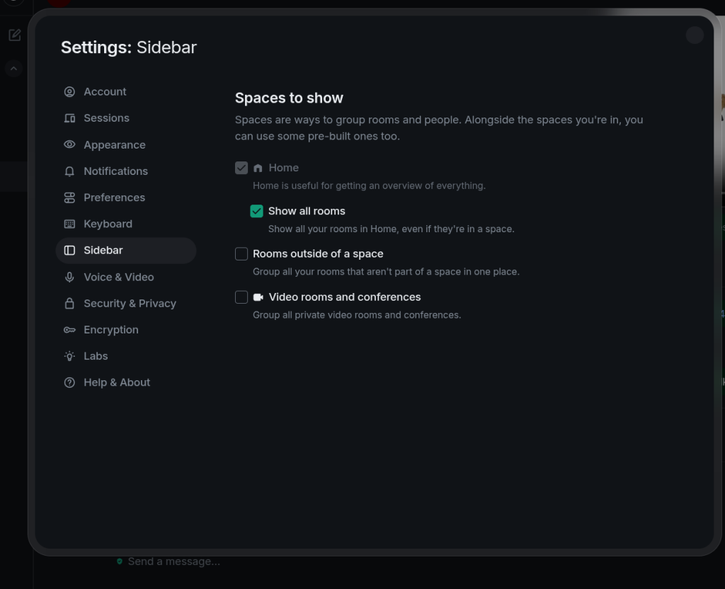 in reply to Kristell • • •"show all rooms" is how you turn that off in element