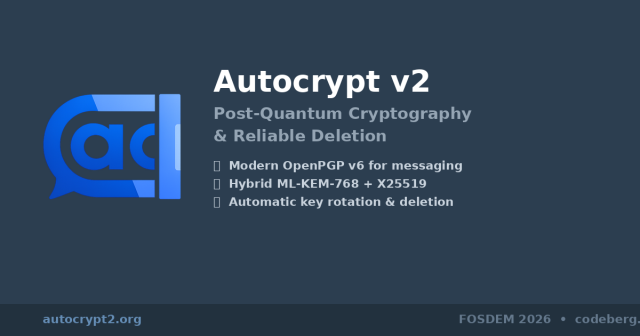 I'll refrain from commenting further until I actually watch the FOSDEM talk on AC2. Good news: for all the hosting providers Russia has been banning en masse lately autocrypt2's website is perfectly accessible at this time :blobcatthumbsup: