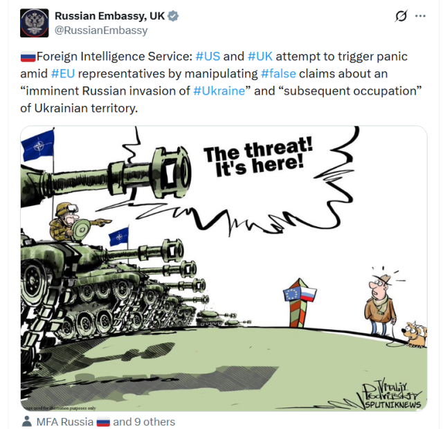 OTD in 2021 Russian Embassy on Londonograd reported that US & UK were manipulating false claims of a Russian invasion & occupation of Ukraine to spread panic.