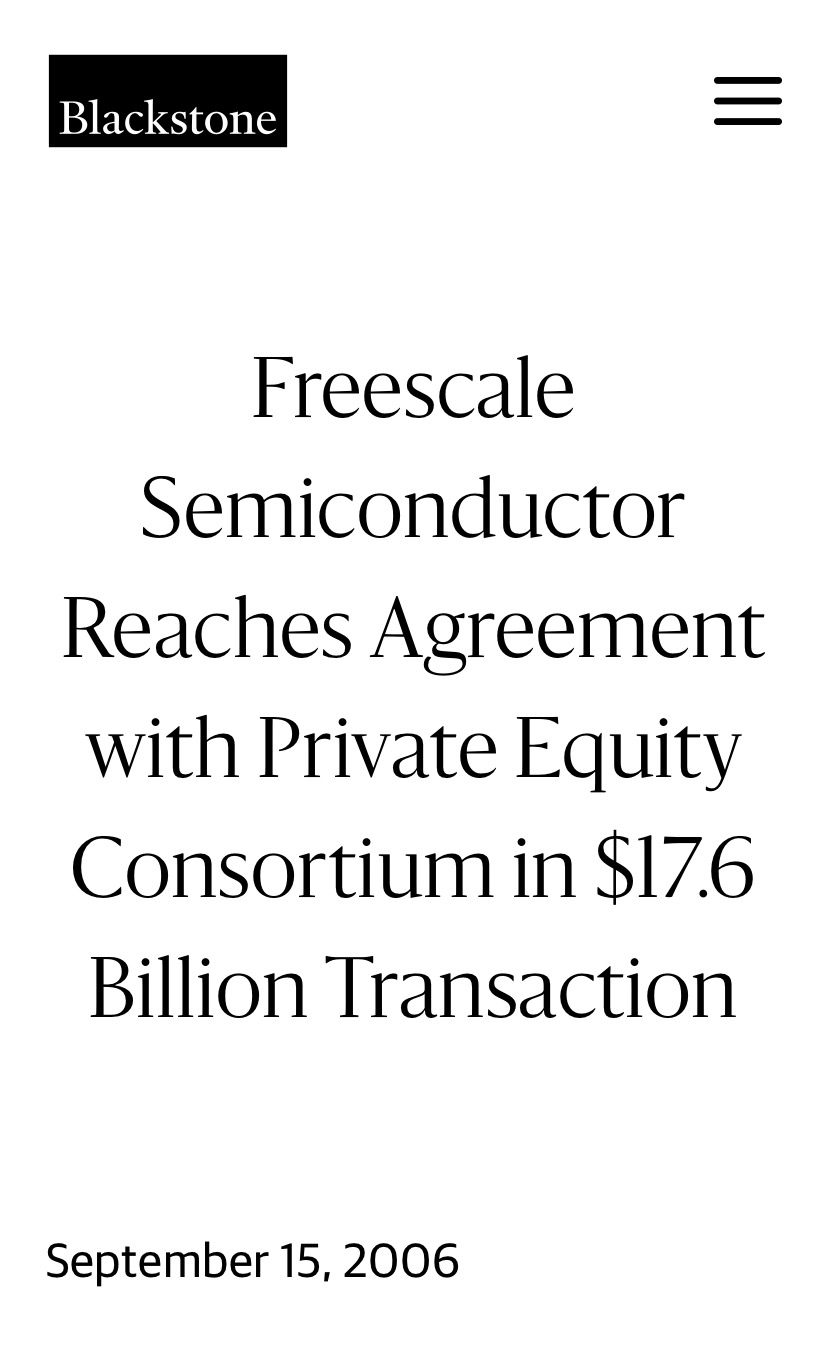 Freescale Semiconductor Reaches Agreement with Private Equity Consortium in $17.6 Billion Transaction - Blackstone