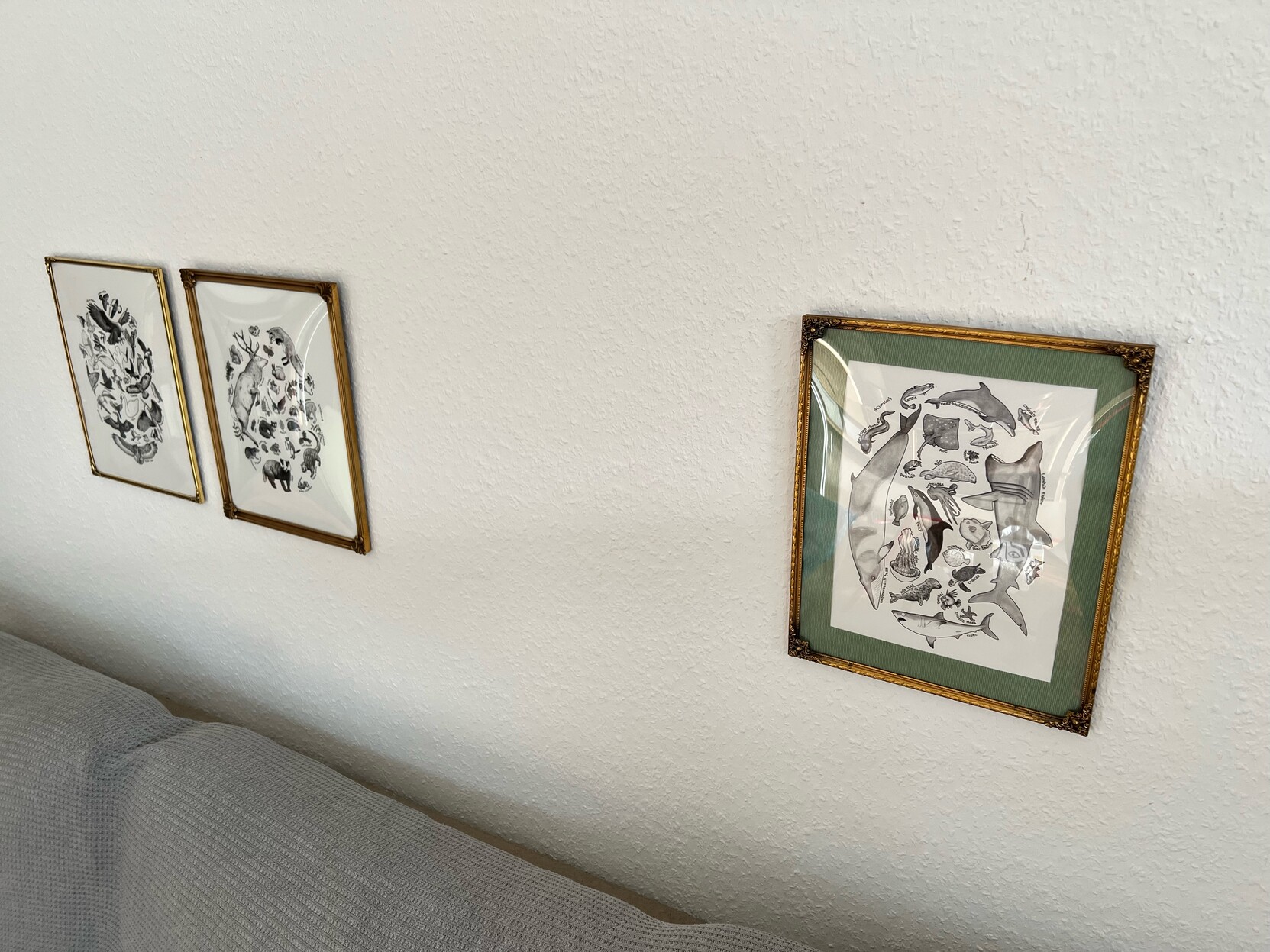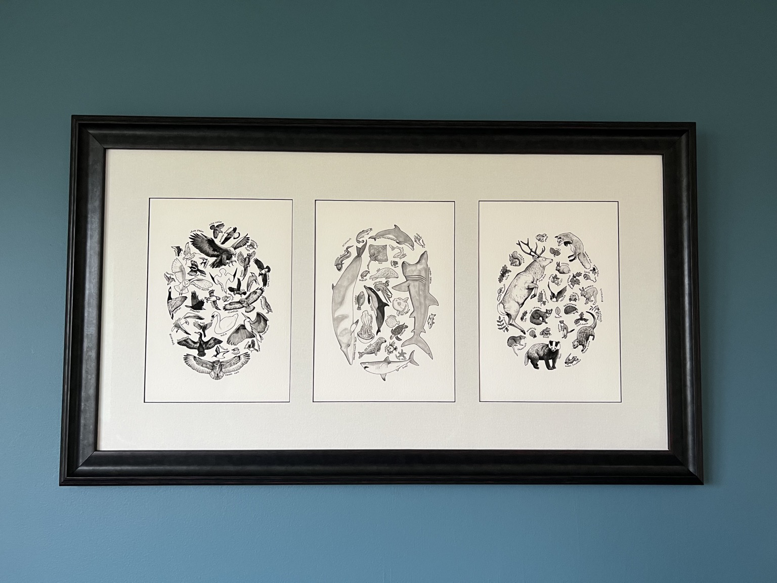 2) Any recommendations for how to frame them? I’m thinking all three side-by-side in one frame.
