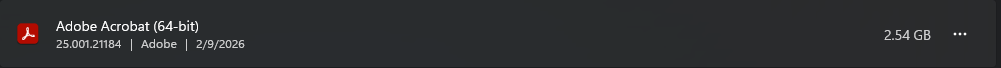 I was just looking at the installed software on my work computer and I just realized that #Adobe Acrobat Reader is taking up 2.5 Gigs. In what world does a #PDF reader need that much storage. I cannot understand why Adobe Reader became such a vital component of work computers.