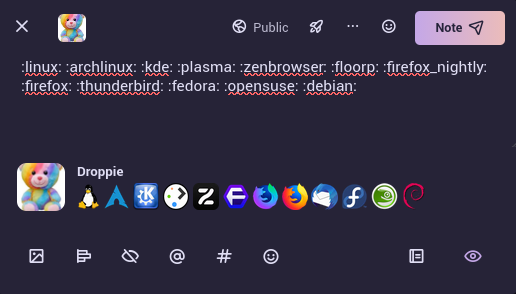 on Masto & Sharkey instances, if the Admins are willing, it is technically possible to add FOSS emojis to the servers. consequently, on many of my instances i've been able to include these in various posts when applicable: