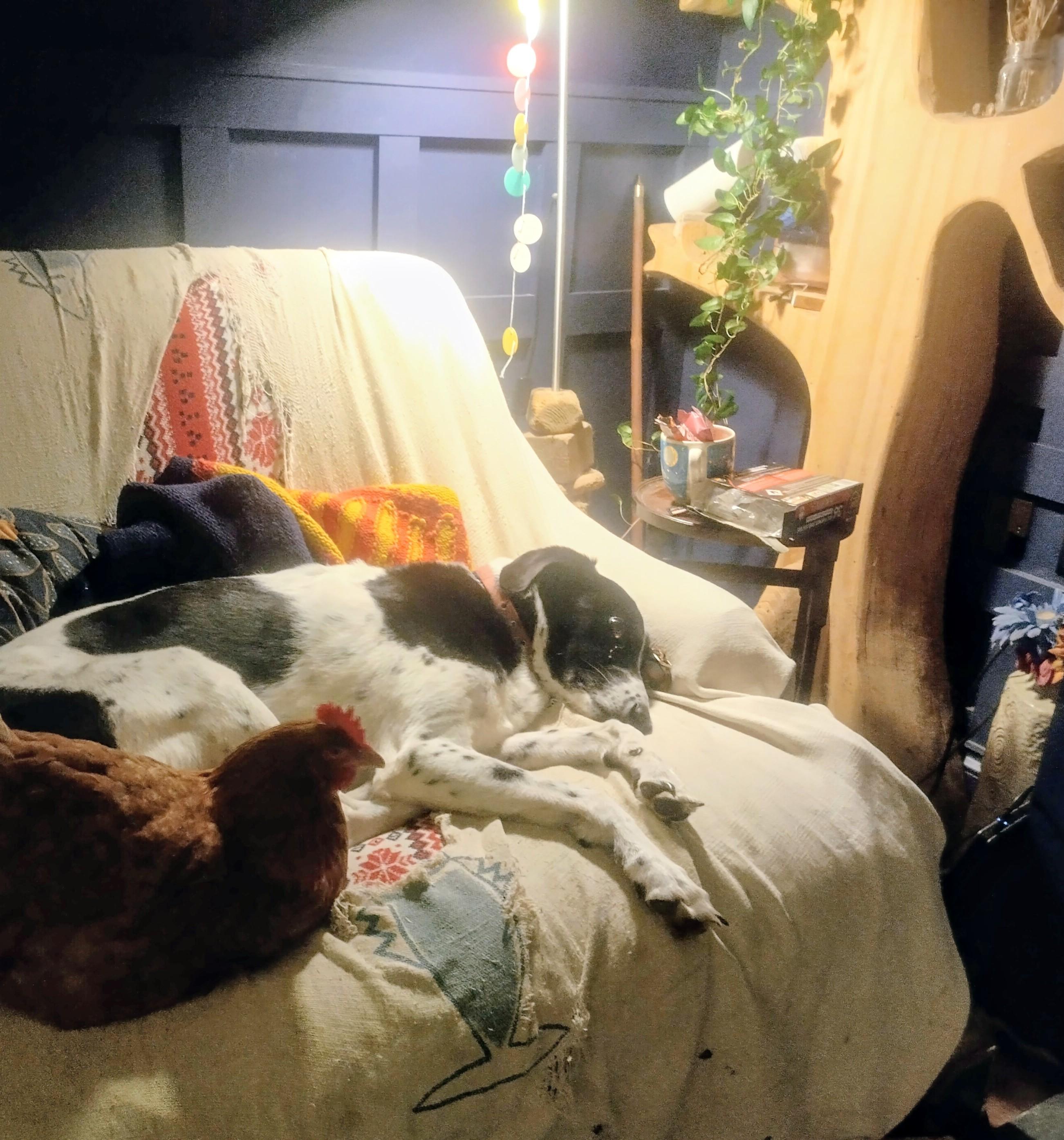 Me: "Outdoors? In this weather? Anyway, I'm sure that's always been her's and the dog's armchair."