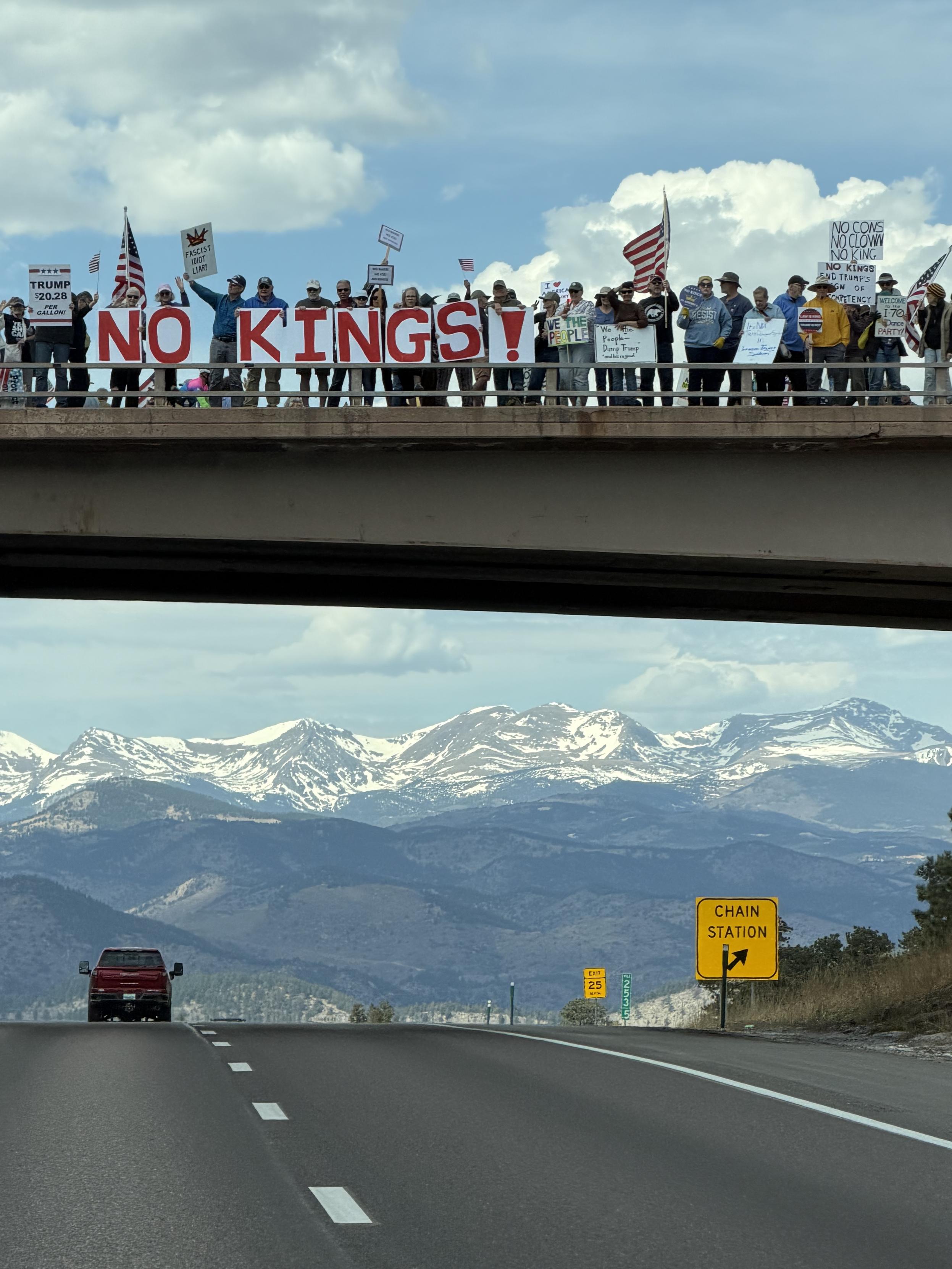Then I watched an older couple walk past the house, moving slowly, slightly stooped, grey hair. And the guy is carrying a big handmade sign that says SMALL DICK ENERGY in thick block letters. So yeah, okay, I’m gonna go with No Kings.