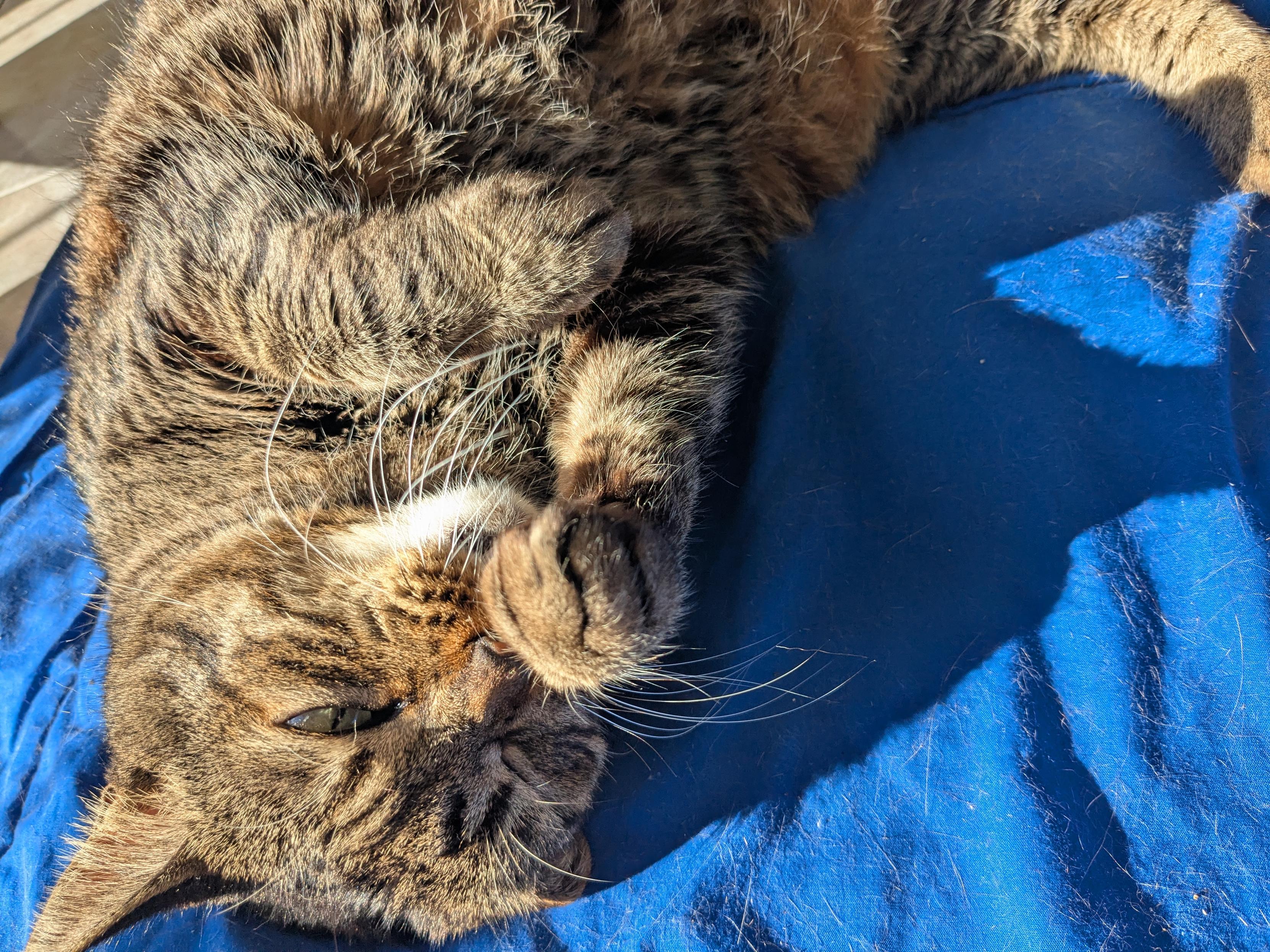 The last bit of the day's sun is shining on Pax as she sleeps. 😴💤
