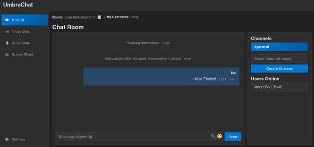 Download UmbraChat for Firefox. Ephemeral private P2P room chat with audio, video, and screen share.addons.mozilla.org