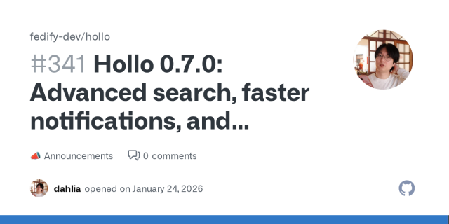 It's been a while since our last release, and we're excited to finally share Hollo 0.7.0 with you. This release brings a lot of improvements that we've been working on over the past months—from pow...GitHub