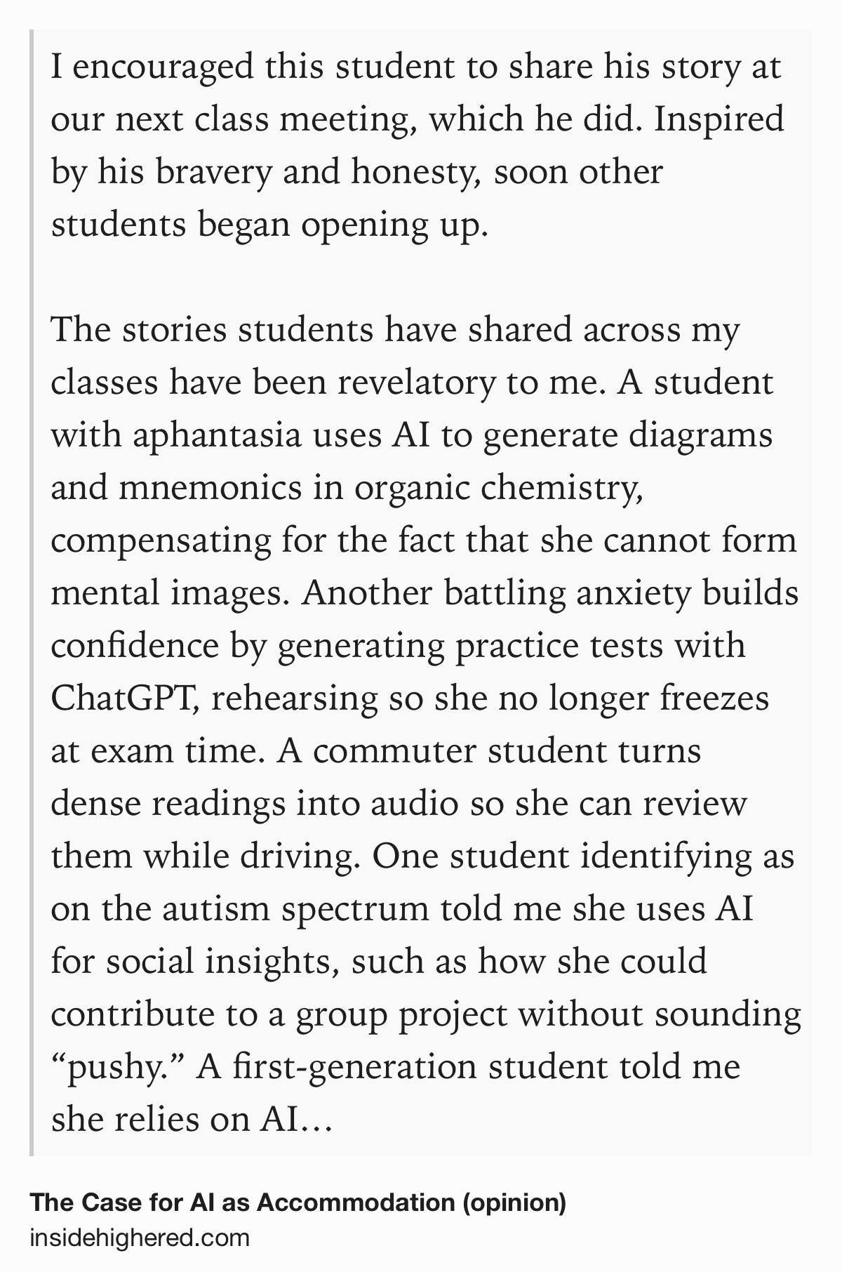 Treating AI as optional risks perpetuating ableism in higher ed.Matthew Brophy (Inside Higher Ed | Higher Education News, Events and Jobs)