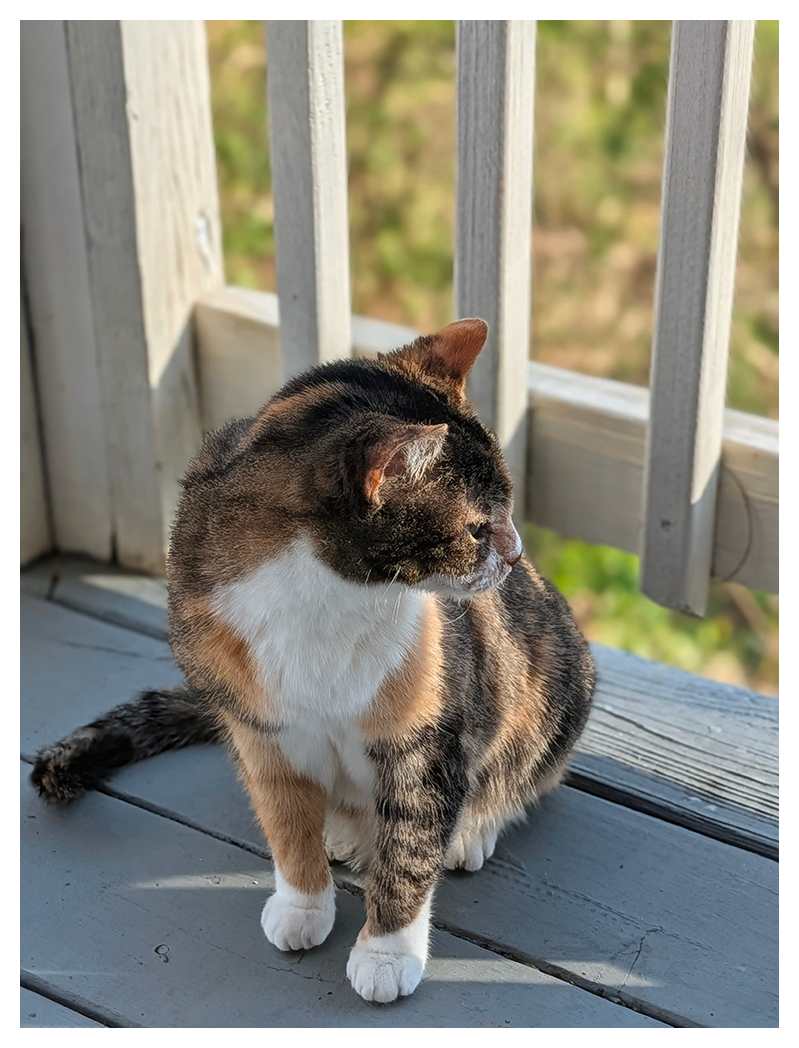 Hanging out on the porch with #CharleneTheCat. It's 70ΒΊ F with a light breeze, and the pollen's not too bad.