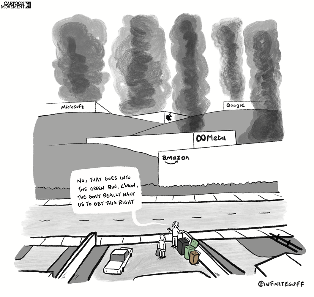 Data centers have a massive environmental impact. Today’s cartoon by Fergus Boylan. More cartoons: cartoonmovement.com/
