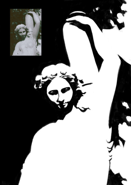 Absolutely regretted my decision to pick this particular image for the Notan study but I did my best. I also felt the need to add the black background because it didnโt make much sense without it. Kind of looked like a floating head with a weird hand so I thought that was the only way to save it.