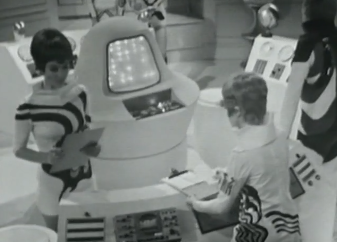 Love this (apparent) photo of Verity Lambert (first producer of Doctor Who) using a Mechanoid (from 1965's serial The Chase) firing on full flame to light her cigarette.