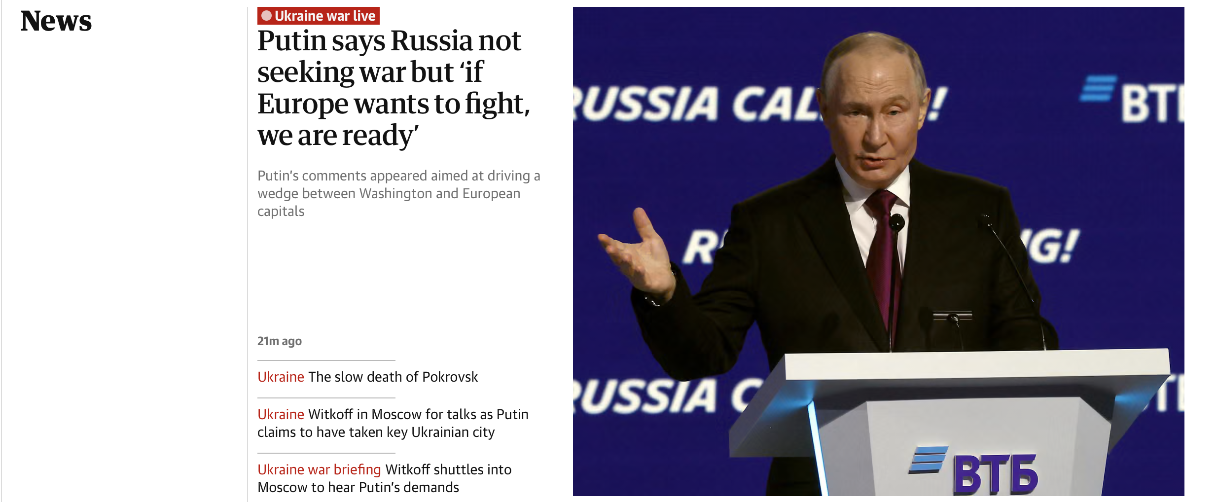 L’émissaire américain Steve Witkoff rencontrait le président russe en fin de journée, mardi. « Nous n’avons pas l’intention de faire la guerre à l’Europe, mais si l’Europe le souhaite et commence, nous sommes prêts dès maintenant », avait lancé aupar…Le Monde.fr