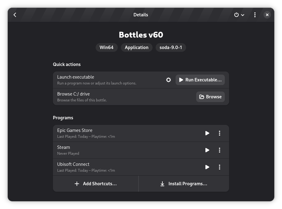 Bottles v60 just released with... a lot of features and fixes, please read the changelog here: github.com/bottlesdevs/Bottles…