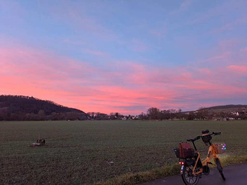 #obob #fahrrad #mdRnH #frostpendeln #Taubertal #FahrradStattPorsche #adventsradeln #Abendrot