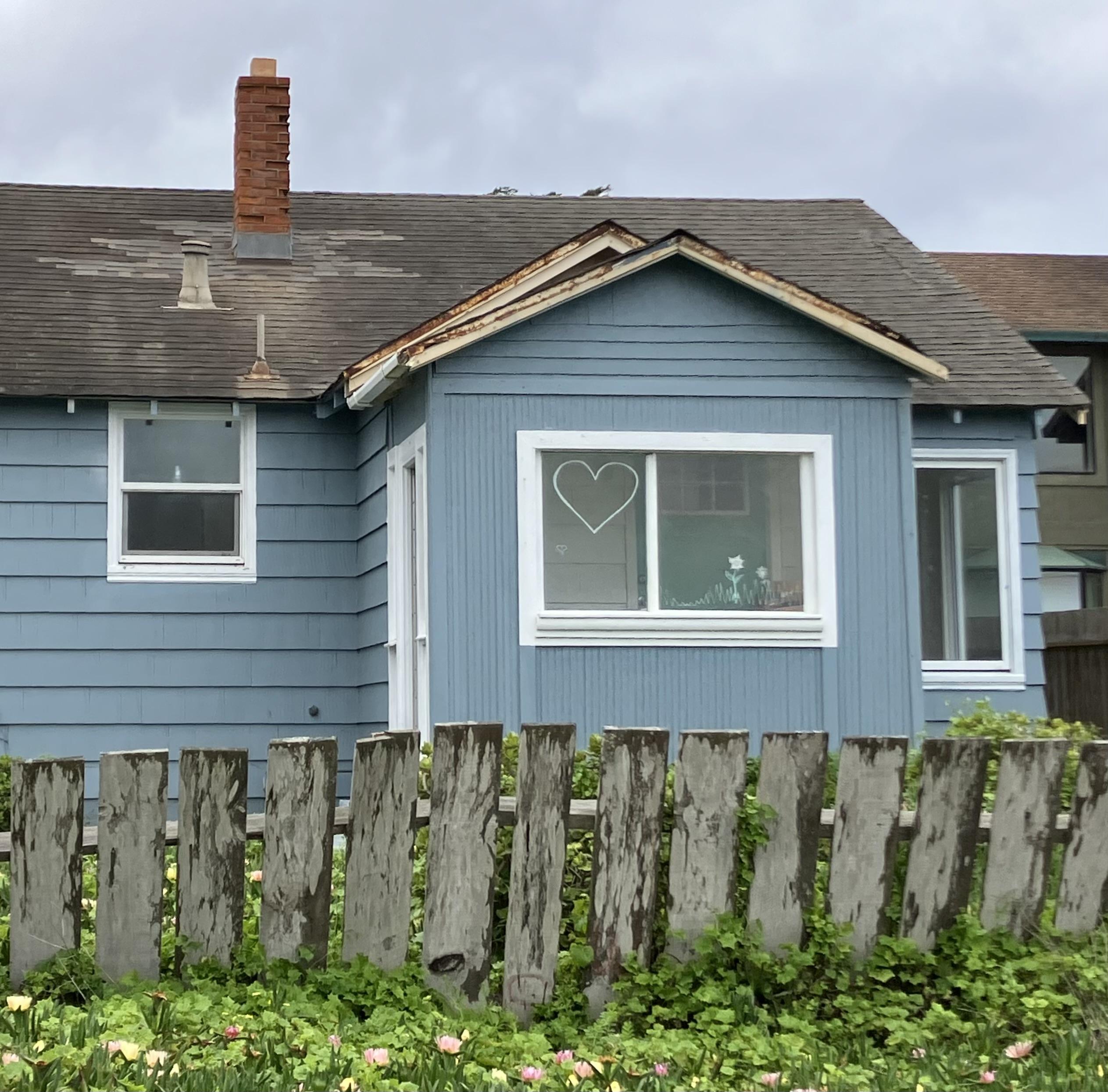 For #FensterFreitag: Not a spectacular window by any means, but I like the heart. I pass by this one coming home from Half Moon Bay State Beach.