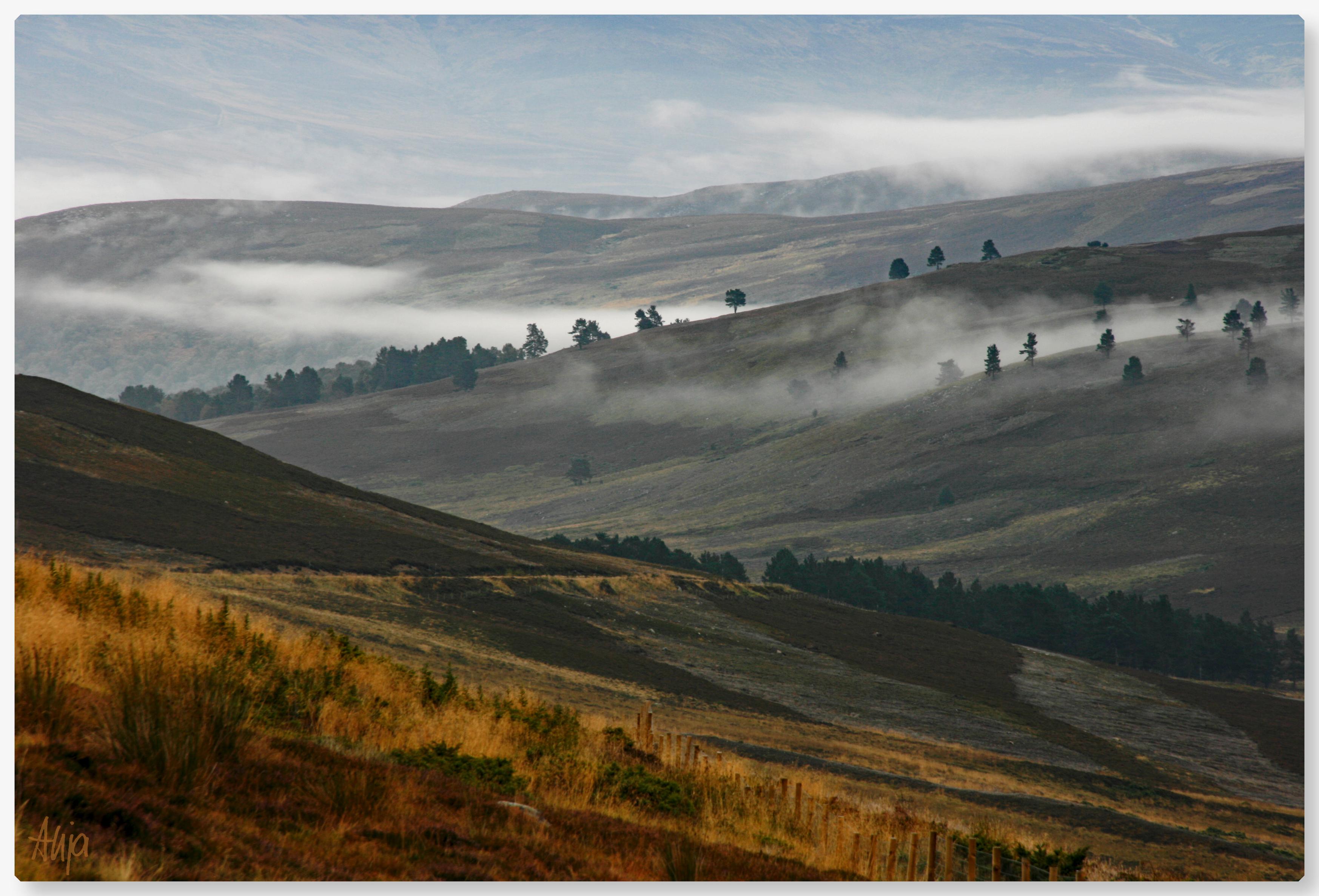 The fog devours the outlines but the light remembers the shape.