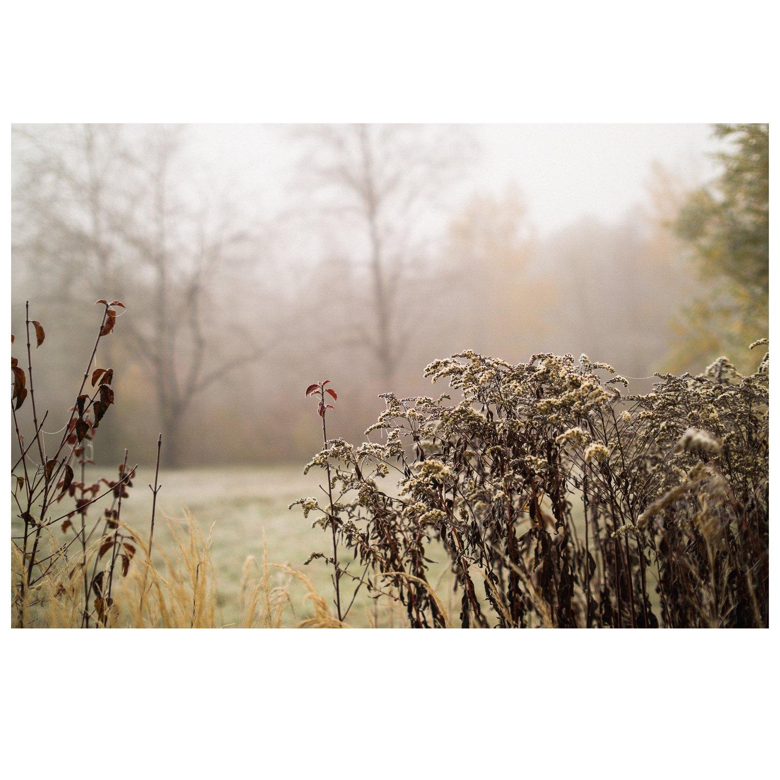 Ein winterlicher Spätherbstmorgen mit Reif, Nebel und Sonnenaufgang