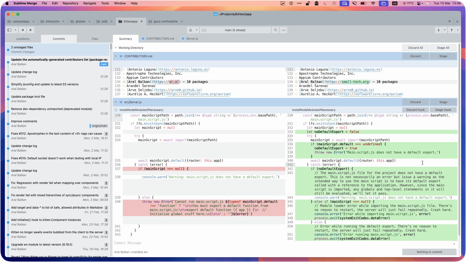 • Other monitor: Sublime Merge⁴ always running full-screen so I can immediately see exactly what I’ve changed (in real time) as I’m working.