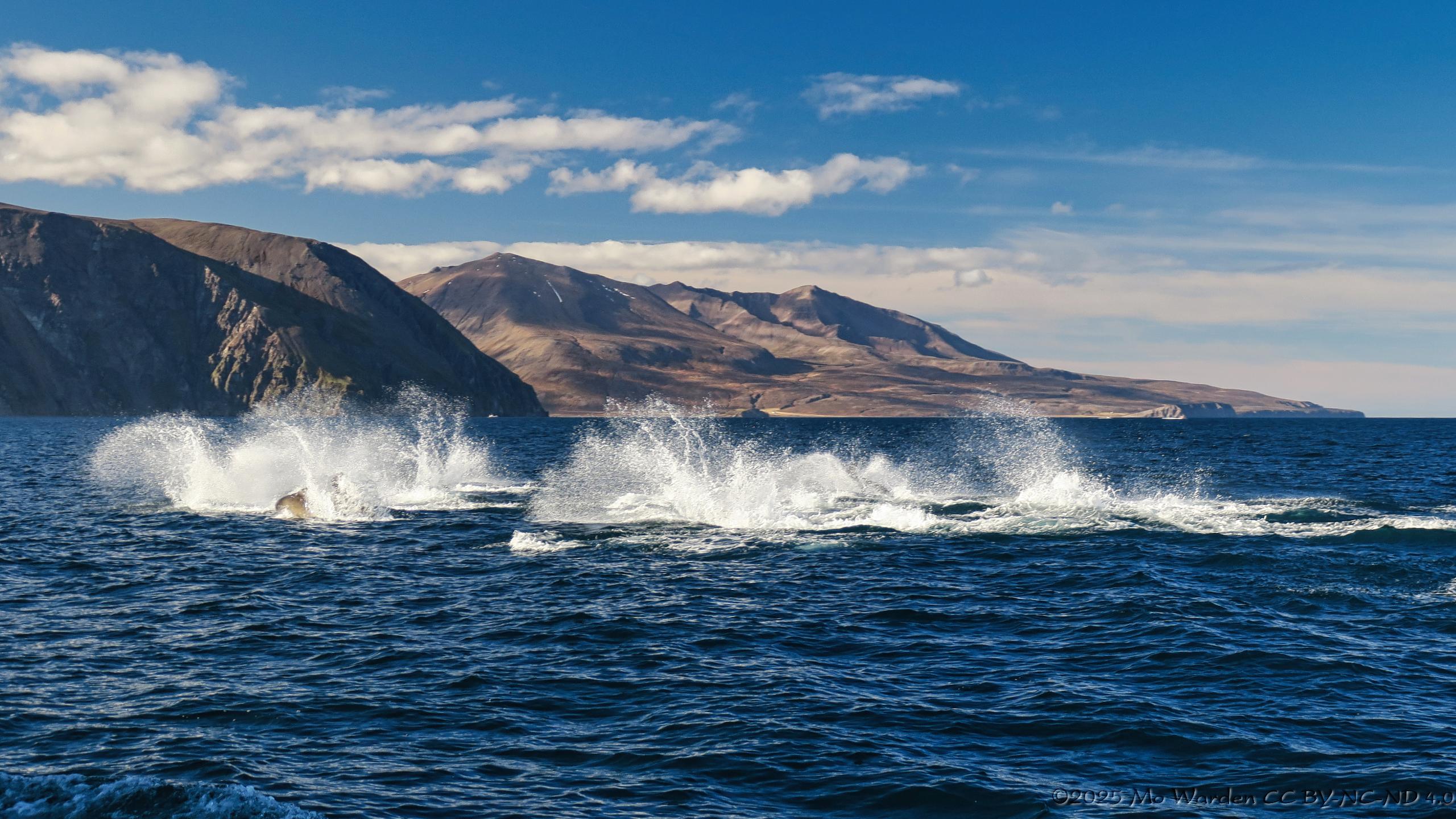 These beautiful animals were racing each other through the water, their sleek bodies leaping and, instead of the simple "surface and breath" behaviour, they were making splashes.