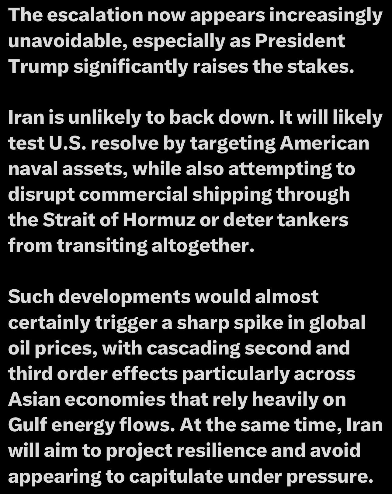 Iran is unlikely to back down.🚨It’ll likely test #US resolve by🎯ing Am naval assets…”⬇️