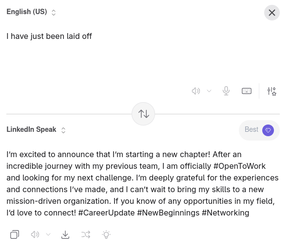 #Kagi translate now also offers the ability to translate your text into “LinkedIn speech”.