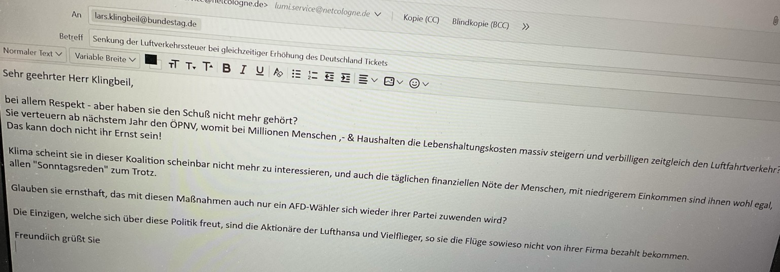 …anhängende Mails habe ich soeben an Bärbel Bas und Lars Klingbeil verschickt.