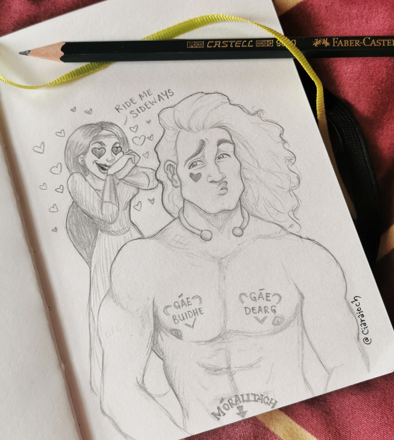 Quick one for the "Heartthrob" prompt for today's #ArtClubIE challenge - Na Fianna's Diarmaid, with the love spot beneath his eye that made him irresistible to women 💕