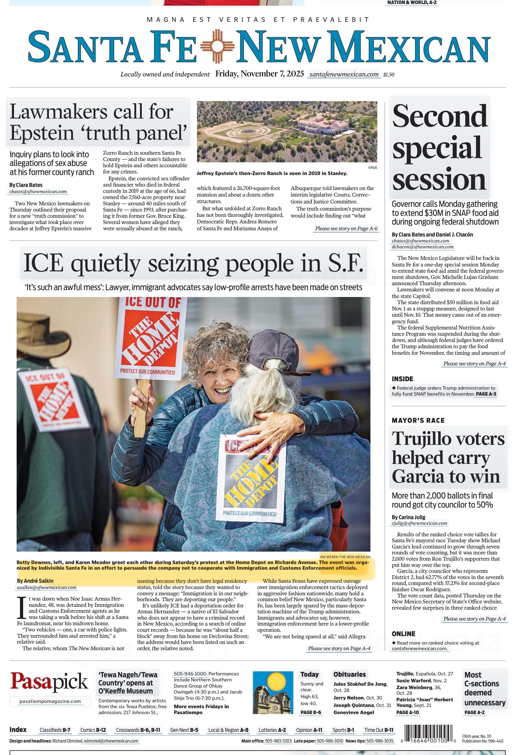 I could not be prouder of Indivisible Santa Fe. Front page coverage of our ICE OUT OF HOME DEPOT action, amidst news about how ICE is β€œquietly” disappearing people from #SantaFe #NewMexico.