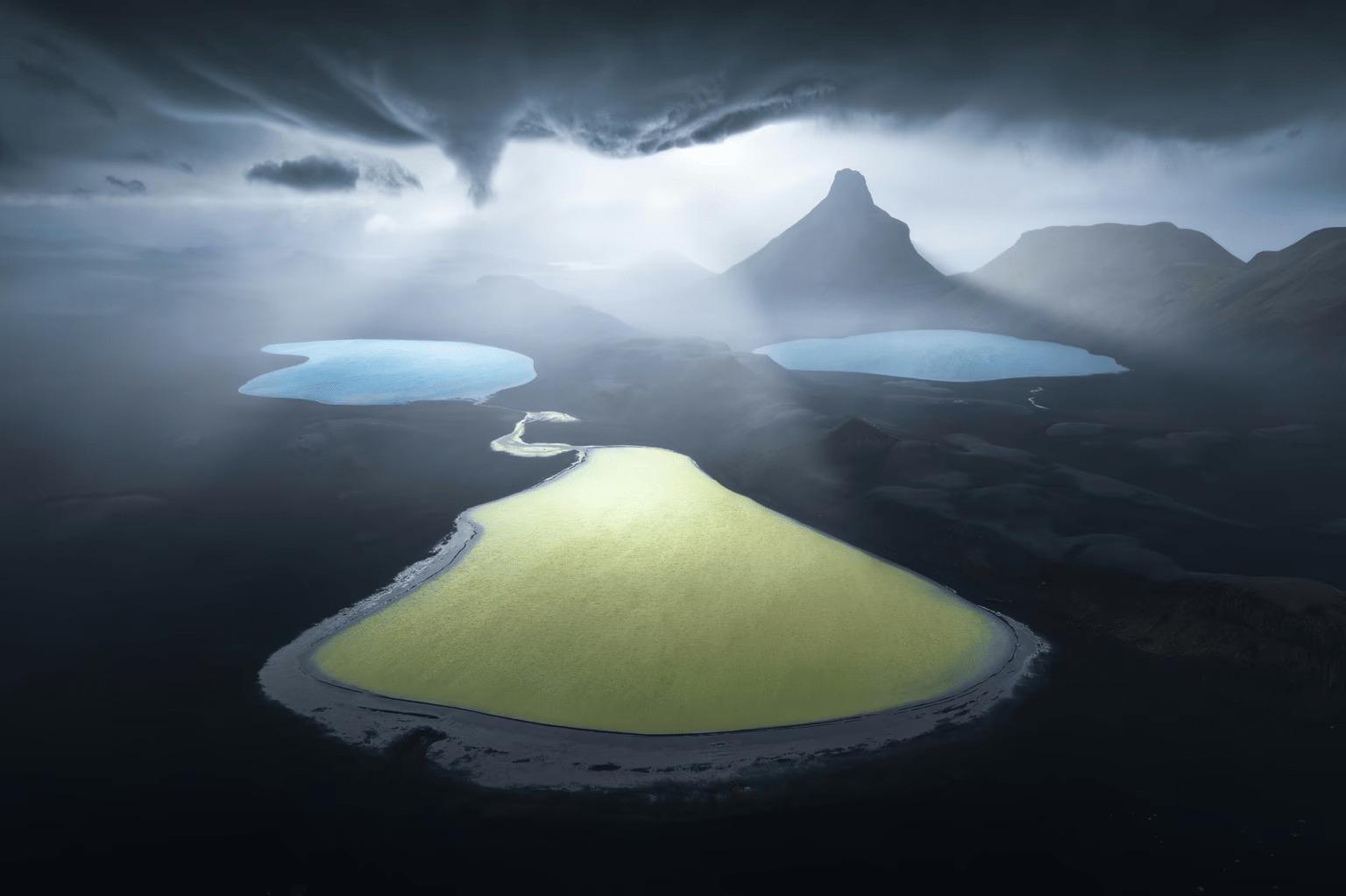 "Earth’s Palette. Seen from above, an ordinary landscape can become something extraordinary, as is often the case in Iceland. Each lake has a different hue, which reminded the photographer of a painter’s palette."