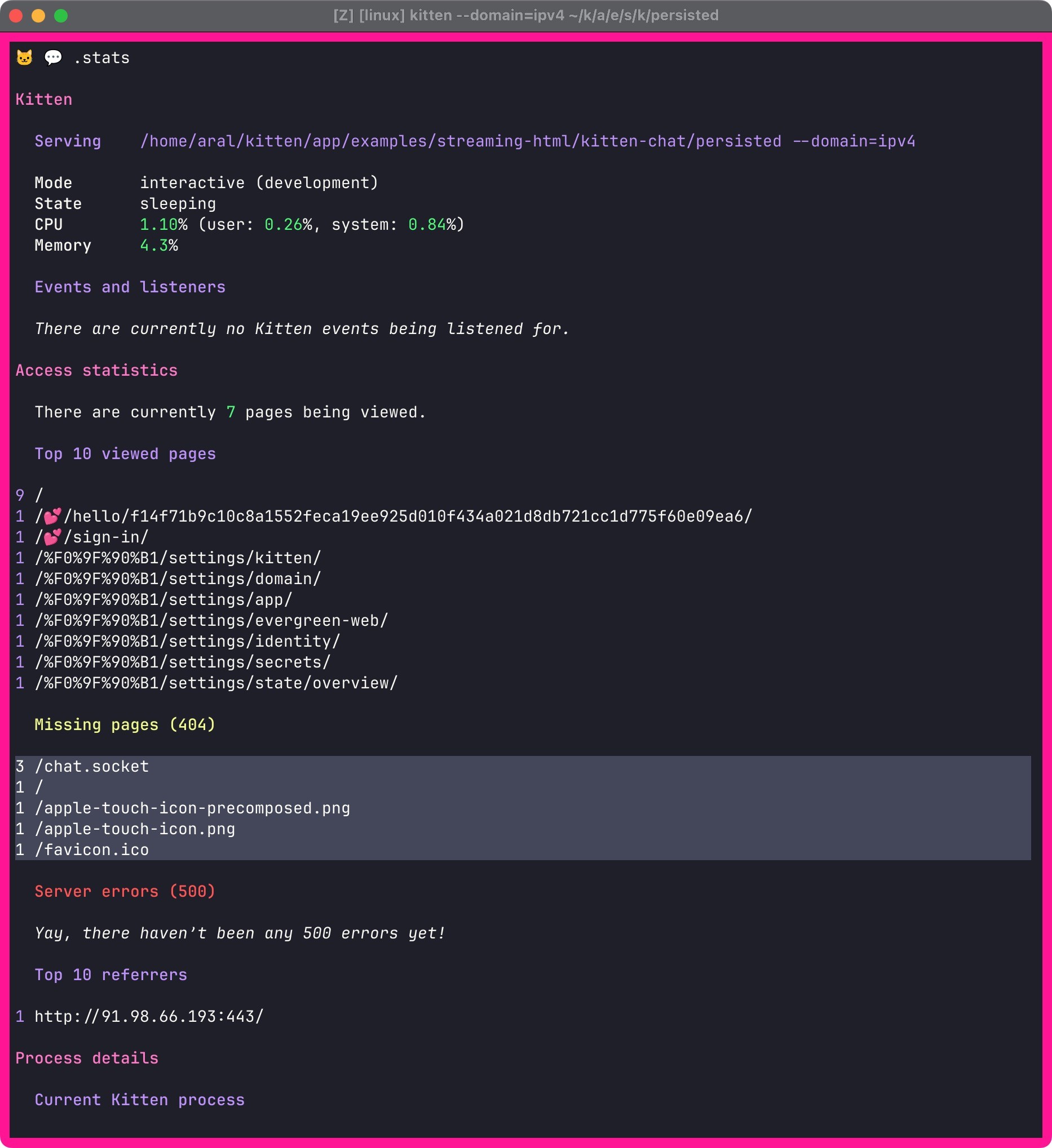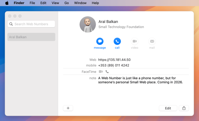 I just saw the first Small Web site (the Kitten Chat example¹ from Kitten²) running at a Web Number³: